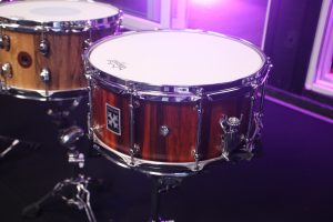 First up is the 14×6.5 Tigerwood snare, priced at around £680. With a 12mm thick shell, triple-flanged hoops, Indie strainer, and PureSound wires, this one is punchy, focused, and slightly darker in character. There’s a tight crack, controlled sustain, and a very direct, no-nonsense feel. It’s an “I don’t mess about” snare.